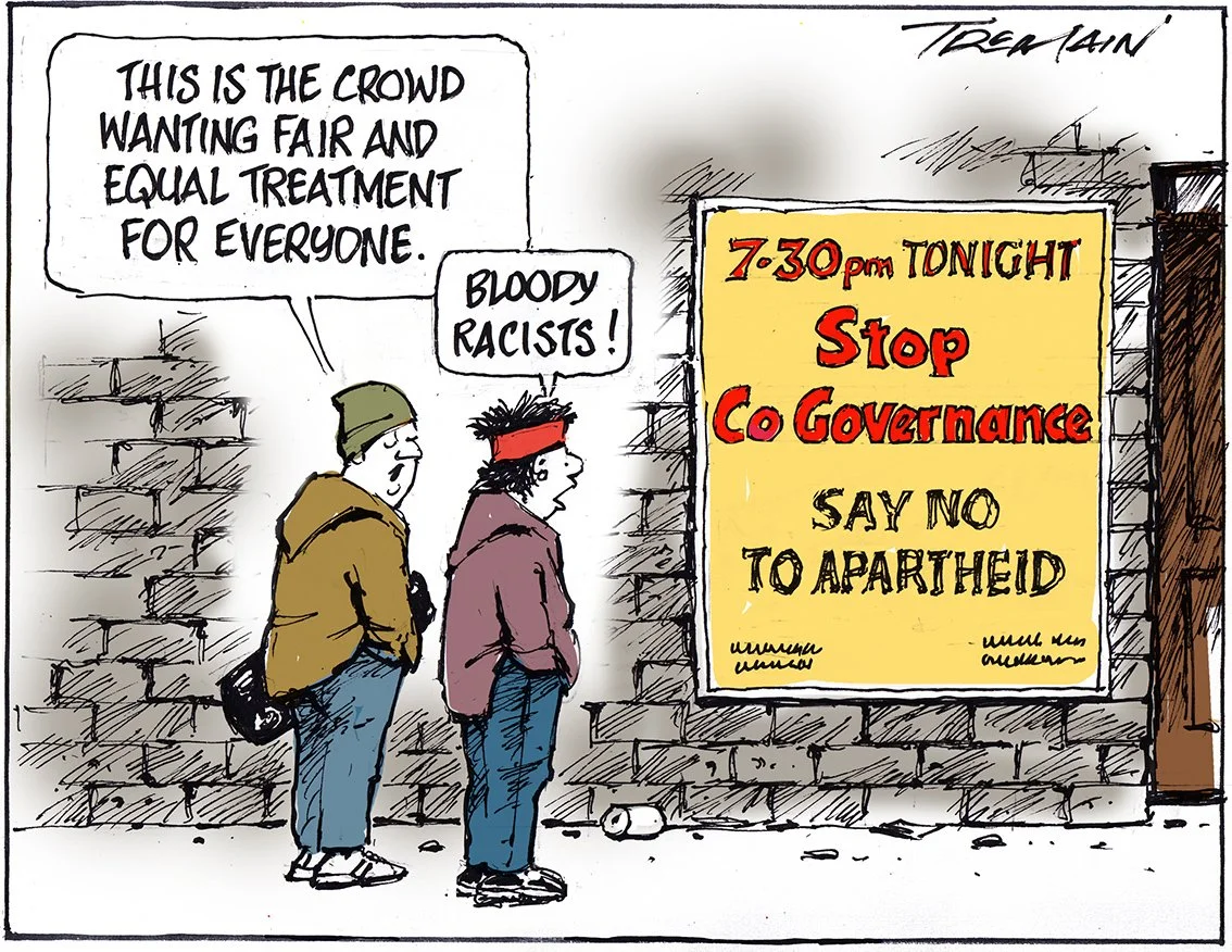 Here is Garrick Tremain's cartoon commentary on Stop Co-Governance meetings!