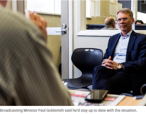 My focus is on the jarring juxtaposition between the reactions to this sordid assault on free speech from NZ First Party leader Winston Peters and ACT Party leader David Seymour, on the one hand, and – on the other hand - National Party Minister for Media and Communications, Paul Goldsmith.