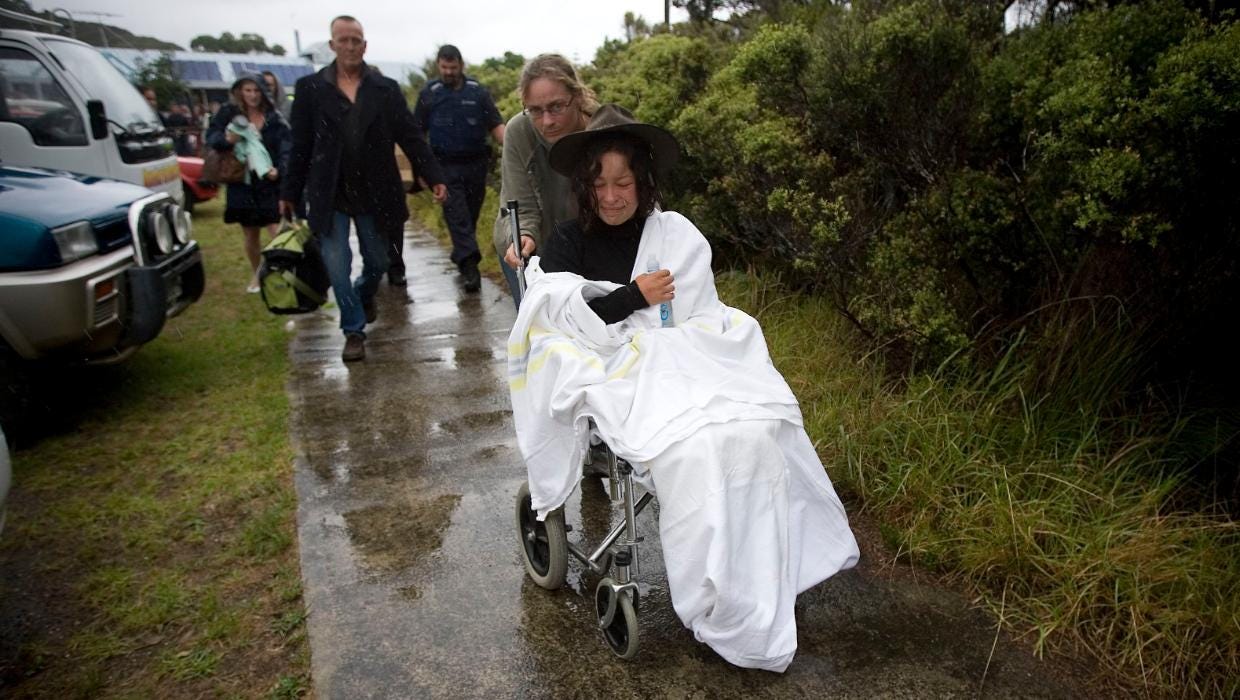 Nortessa Montgomerie is taken to the Westpac chopper after her kidnapper Nathan Boulter was caught. Photo: Lawrence Smith
