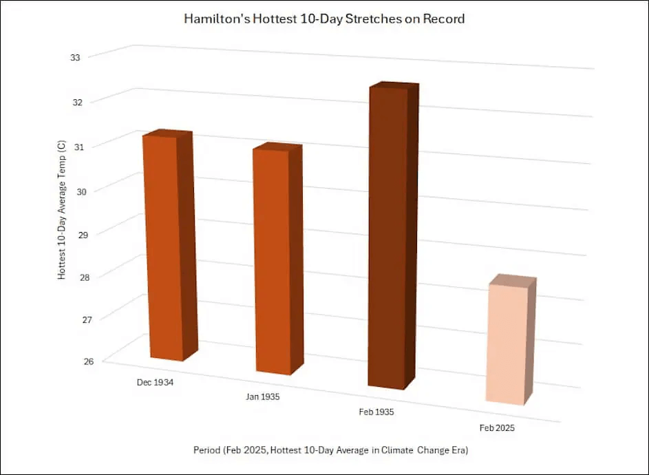 Yes, there will be extremes. There have always been, with many of them long before the current climate religion. For instance, back in February 1935, the New Zealand city of Hamilton experienced its hottest 10-day stretch in recorded history, with an average daily maximum of 32.66 °C – a staggering 4 °C hotter than what NZ climate scientists were trying to claim was a new record in February this year (2025) of 28.63 °C.