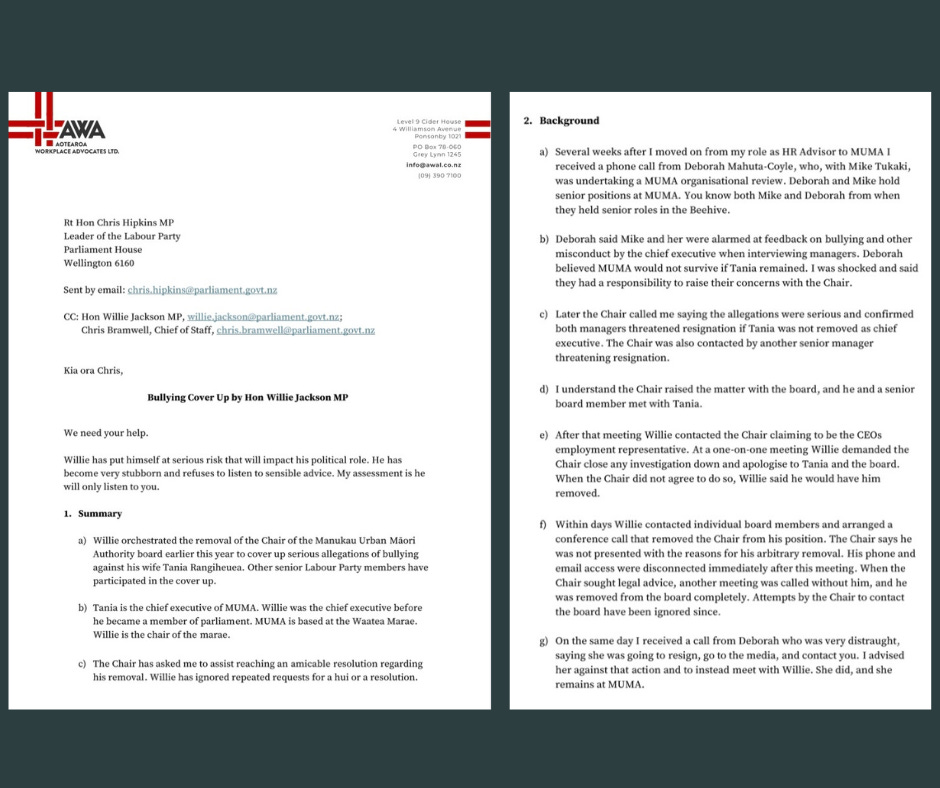 This is a story about workers in a supposedly community-focused Māori authority being crushed under a toxic workplace culture. It’s about a union advocate, one of the most seasoned in the country, being trespassed for trying to help those workers. It’s about a Chief Executive accused by her staff of intimidation and vindictiveness. And crucially, it’s about former Employment Minister Willie Jackson, intervening again and again to shield his wife from accountability.