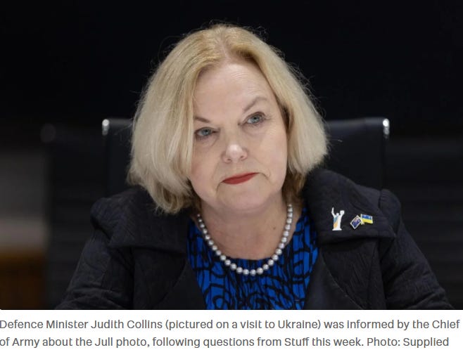 Defence Minister Judith Collins was less aroused that Paula, responding to Stuff’s school girl-ish “exposé” of Col Jull with an assured, “I am comfortable that it was handled appropriately.”