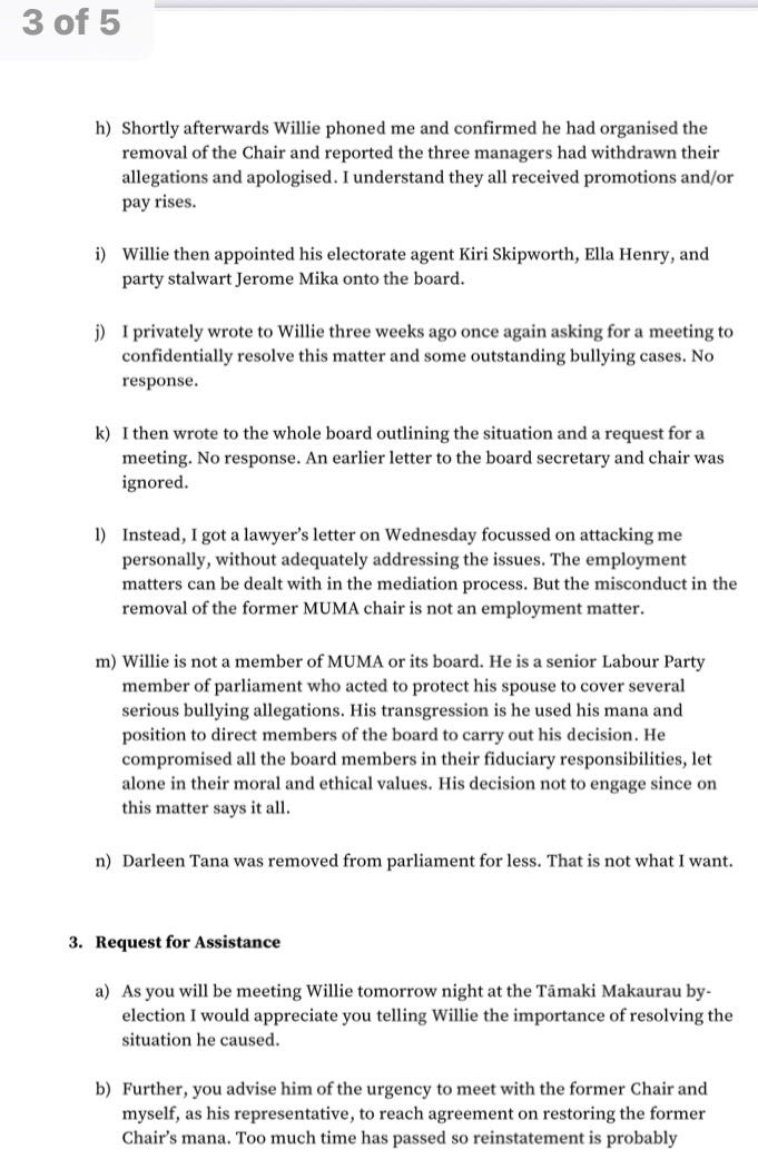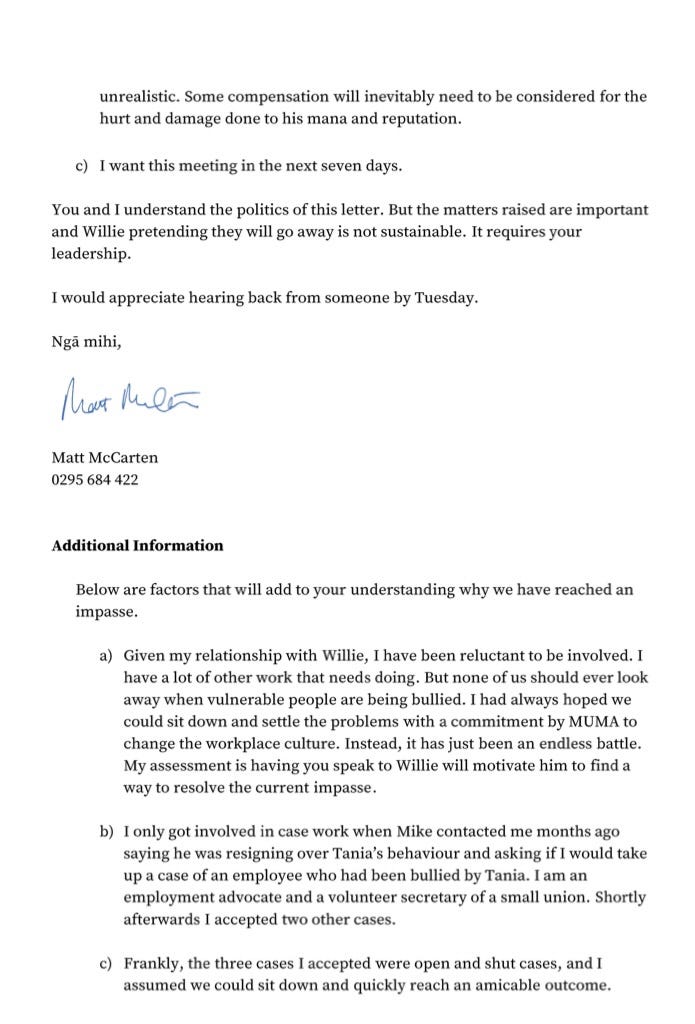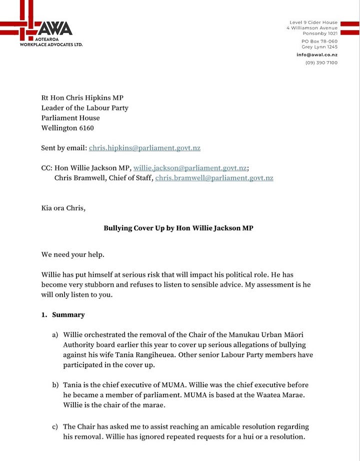 Click all 4 images individually to view - The letter Matt McCarten sent Labour leader Chris Hipkins on the 5th of September, outlining his concerns regarding Willie Jackson.