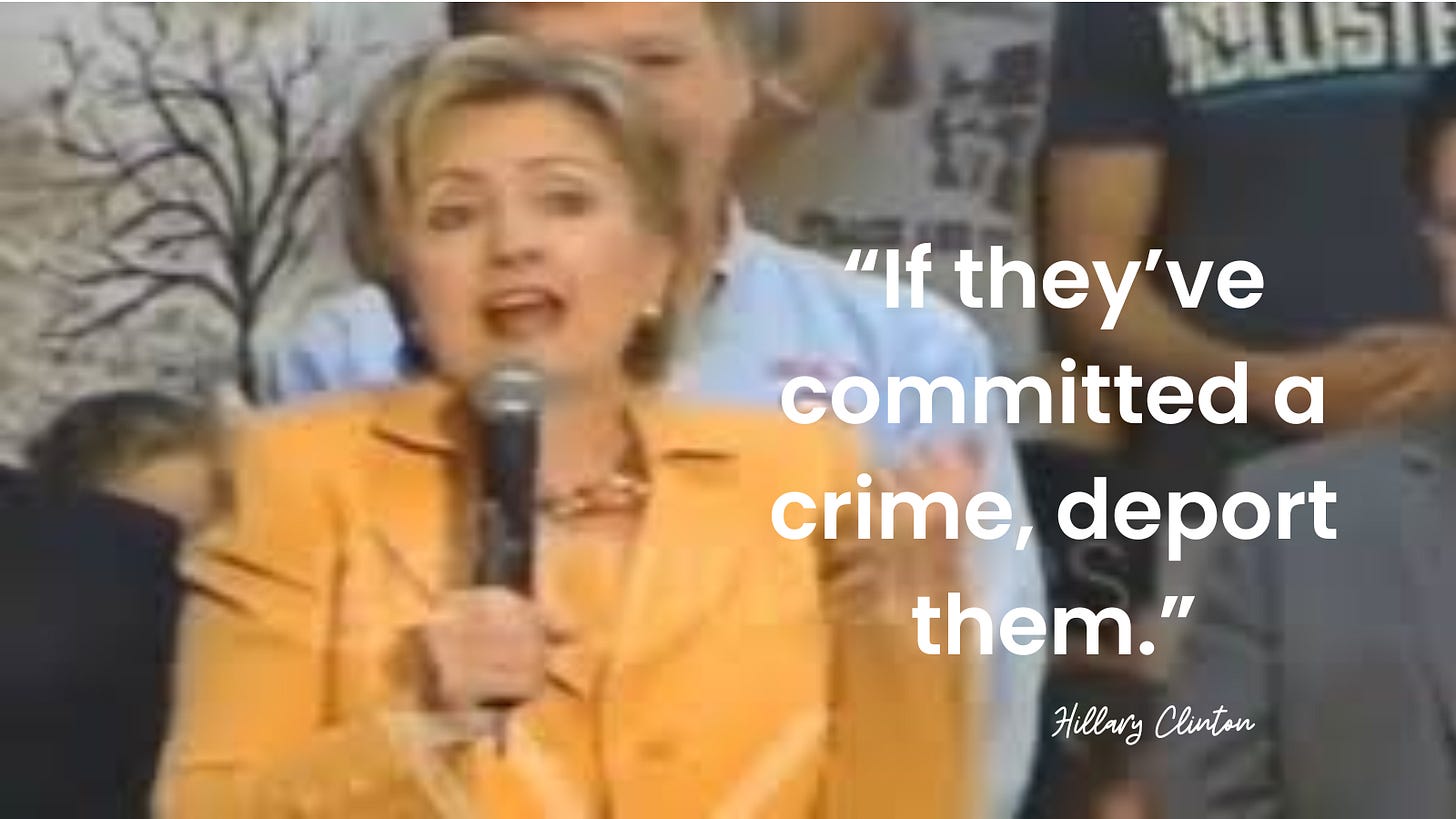 Perhaps America’s most ruthless and clinical political operative, Hillary Clinton is right in the thick of this collapse of truth. Like her husband, Clinton’s historical position on illegal immigration has not been ambiguous. As a senator, Secretary of State, and a presidential candidate, she supported deportation as a matter of law enforcement and national sovereignty. In 2008, she stated plainly: