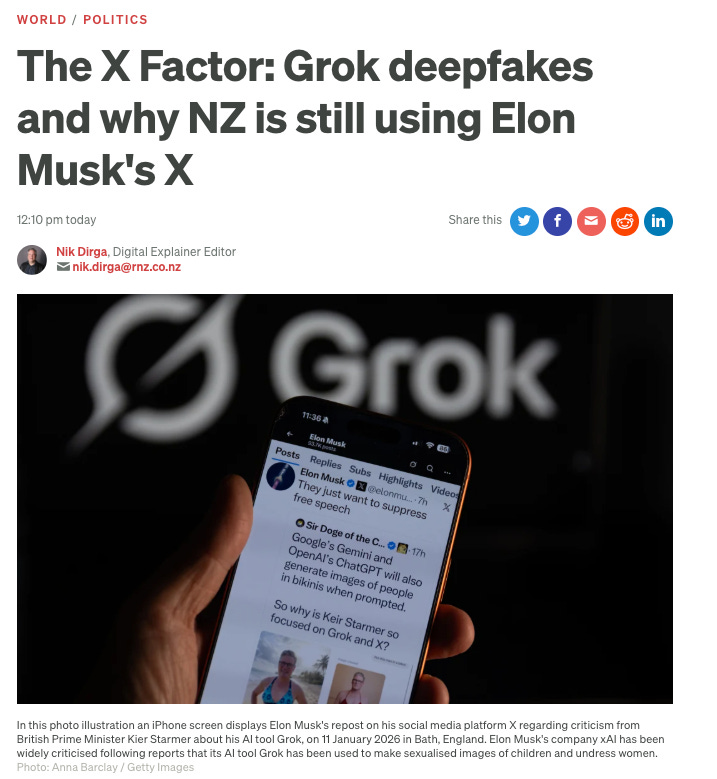RNZ: “X has been in the line of fire over Grok AI deepfakes”