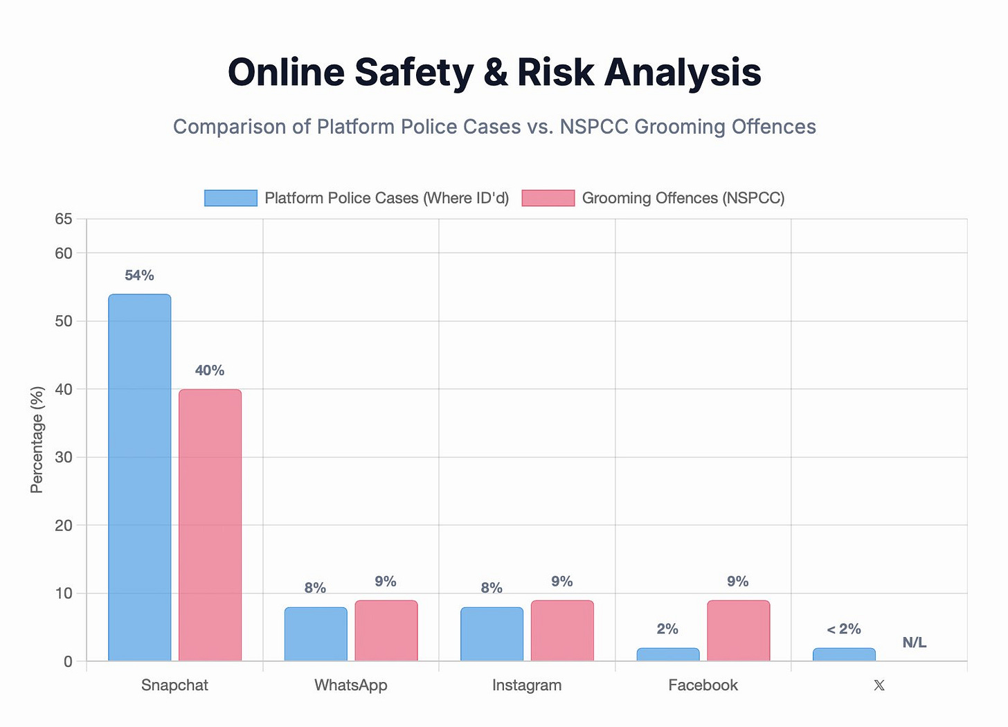 The National Society for the Prevention of Cruelty to Children (NSPCC) reports the same pattern, with around 40% of sexual communication and grooming offences tied to Snapchat, yet there is no comparable political or media crusade against the platform that dominates children’s daily digital lives. Given X operates some of the strictest child-safety enforcement in the industry, reporting illegal material directly to authorities, removing thousands of posts and banning hundreds of accounts every week, and constantly tightening its detection systems, this does not look like a serious child-protection matter.