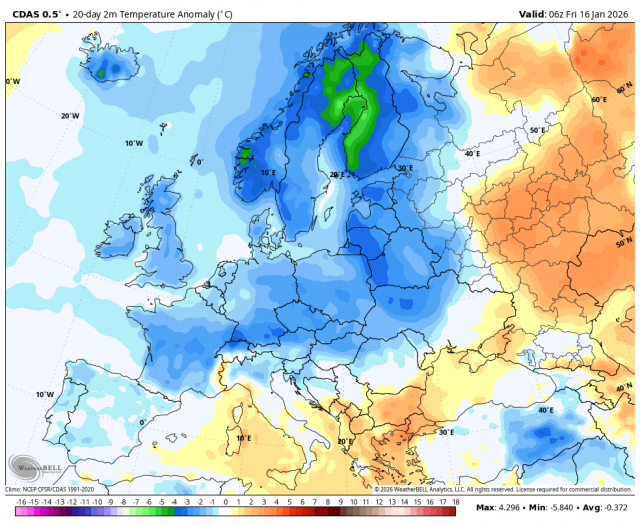 Now the coup de grâce. In the face of the coldest air mass in decades spreading eastward out of Russia (they are exporting more than just natural gas) and arriving at the coldest time of the winter, European leaders are making a big deal about defending Greenland against the US.