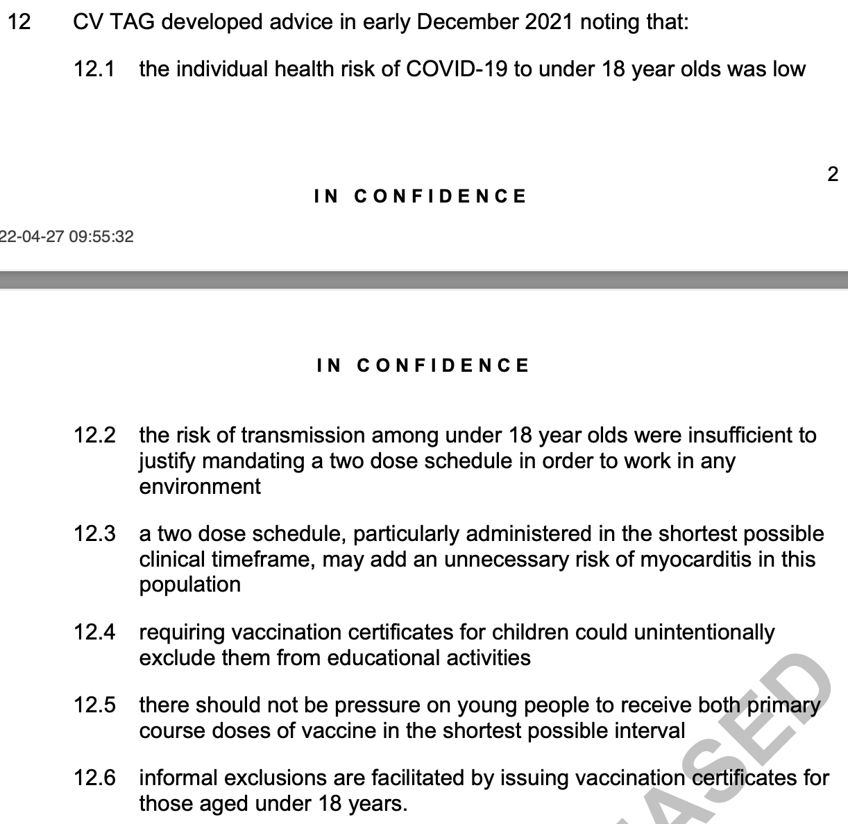 So when he stood up on 6 April 2022 and celebrated free boosters (a third dose) for 16 and 17 year olds, it followed a Cabinet paper in his own name that had already acknowledged the low COVID risk to under-18s, the lack of transmission justification for a two-dose requirement, and the possibility of unnecessary myocarditis risk in this population.11