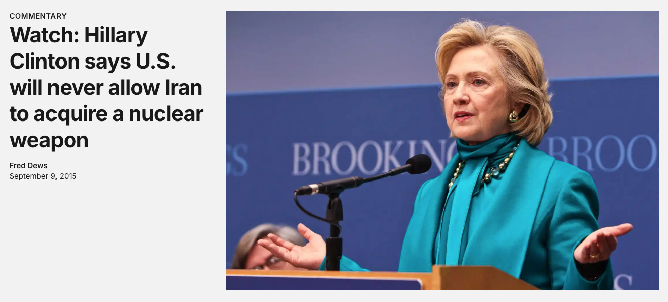 In a major policy speech, Clinton cautioned that the Iran agreement “isn’t the start of some larger diplomatic opening” and should not be expected to fundamentally change Iran’s behaviour, adopting the deliberately blunt doctrine of “distrust and verify”. Where Obama tended to isolate the nuclear issue and treat the deal as a stabilising breakthrough, Clinton framed Iran as a persistent strategic adversary that would continue to sponsor proxies, challenge regional order, and require sustained military, economic, and diplomatic pressure. In this, her assessment of Iran has more in common with Donald Trump’s although their approach differs. Chuck Schumer, John McCain, Lindsey Graham, and the Brookings Institute have also conveyed similar understandings of the situation. It could be considered the mainstream bipartisan strategic consensus.